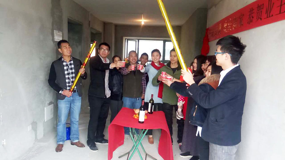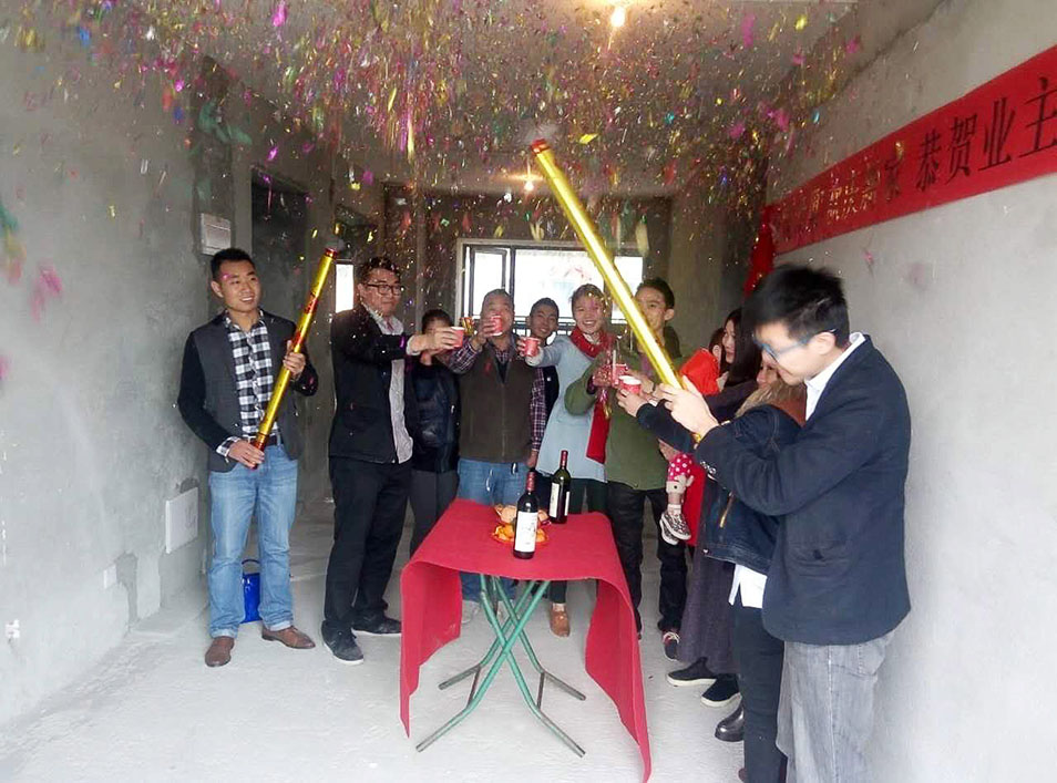 半山半海装修现场开工举杯畅饮