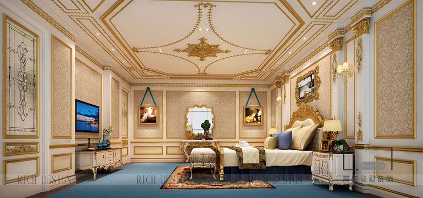 东逸湾别墅装修案例在天花板和墙面上精致考究的雕花,精美的大理石拼花,仿佛将人拉回中世纪的法国,高贵典雅。