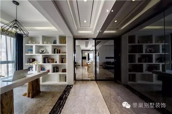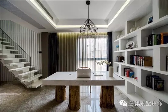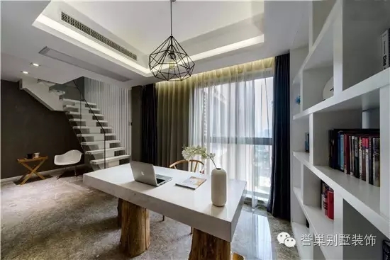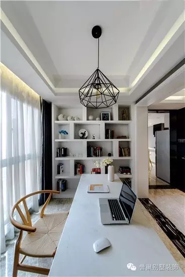 书房背对落地窗,透出清晰淡雅的光。