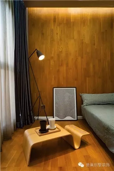 温馨的落地灯与木纹地板装饰,是一种生活态度的反射,
