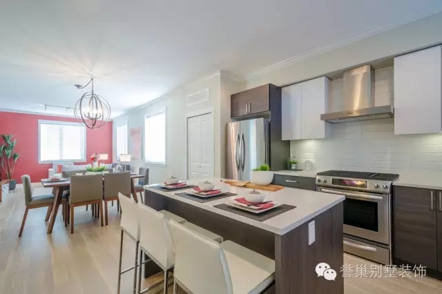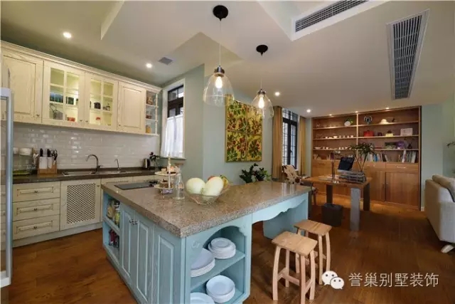 清爽的色调搭配,也可以从主观上给人营造一个清凉舒适的厨房,让你做饭很舒服。在给厨房吊顶、墙壁、橱柜等设计色彩搭配时一般会选用白色、蓝色、浅绿色、米色等色调,浅色、冷色能让人平复燥热的情绪。