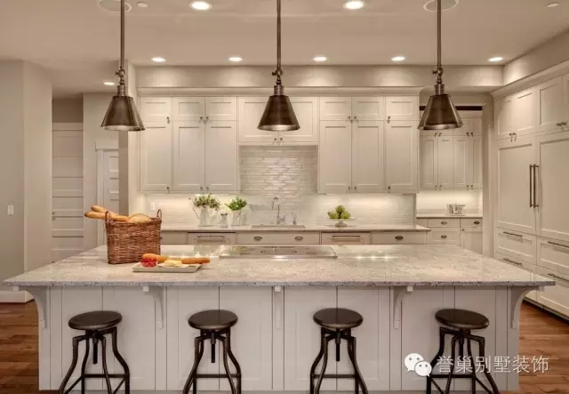 厨房灯光需分成两个层次:一个是对整个厨房的照明;另一个则是对洗涤、准备、操作各区分别的局部照明。后者中洗涤与准备区,一般可以在吊柜下部布置射灯光源,并设置方便的开关装置。而在操作区中,充足的光线能使您在操作时更能掌握火候。
